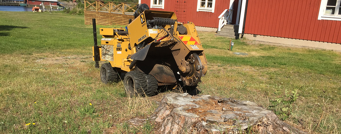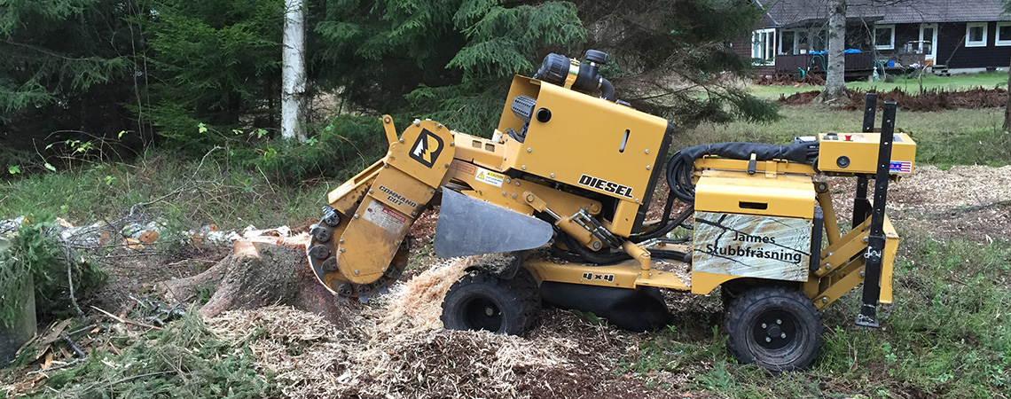 Jannes Stubbfräsning jobbar i Stockholm, och även Storstockholm och Stockholms skärgård. På stubbfräsen sitter det breda hjul som är väldigt skonsamma mot din gräsmatta.